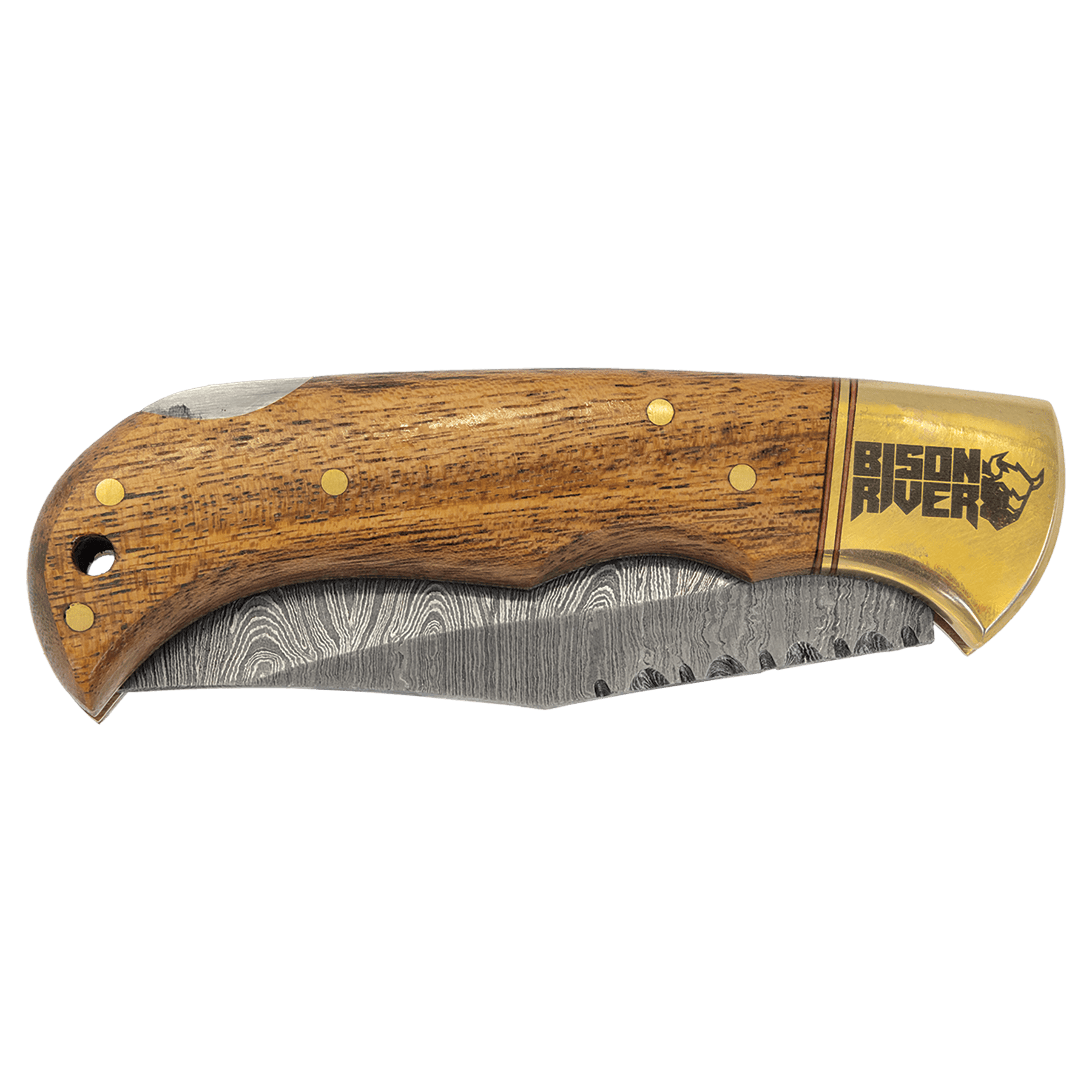 This Bison River folding knife is made to last and features either a wood or bone handle handle and Damascus Steel blade, known for strength and the distinctive patterns embedded in the steel. The knife comes in a leather sheath with a snap closure and slits on the back so it can be worn on your belt. This beautiful knife is perfect for groomsmen gifts or personalized gifts for any occasion.