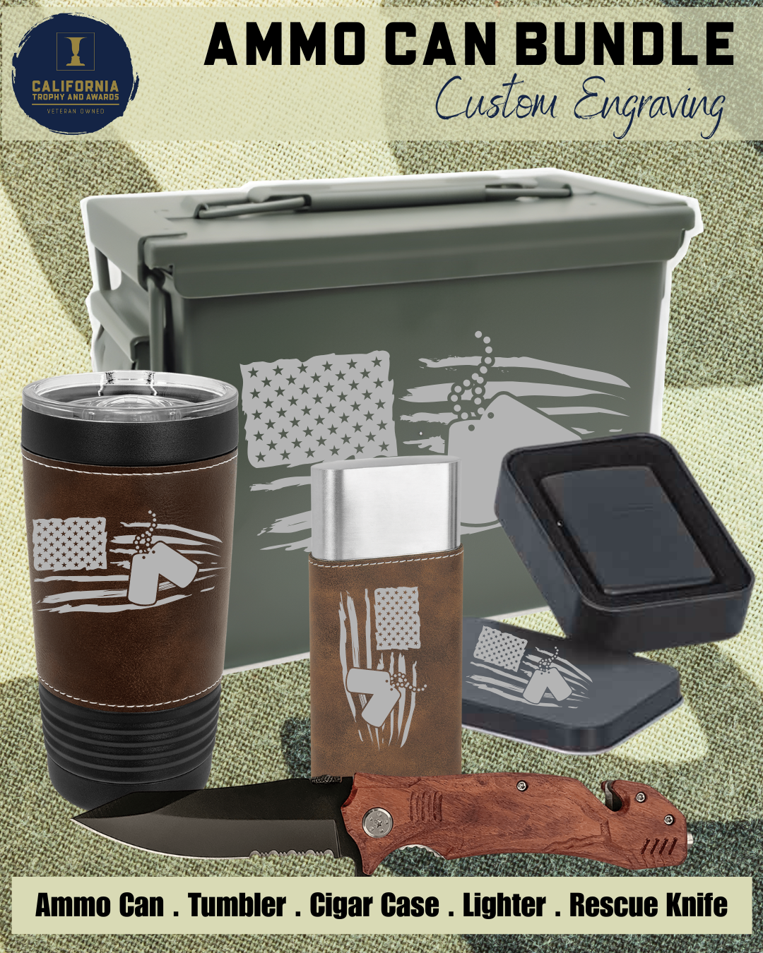 Bundle 3: includes 20oz Rustic Leatherette Black tumbler (LTM5208) and Wood handle rescue knife (BR1004)