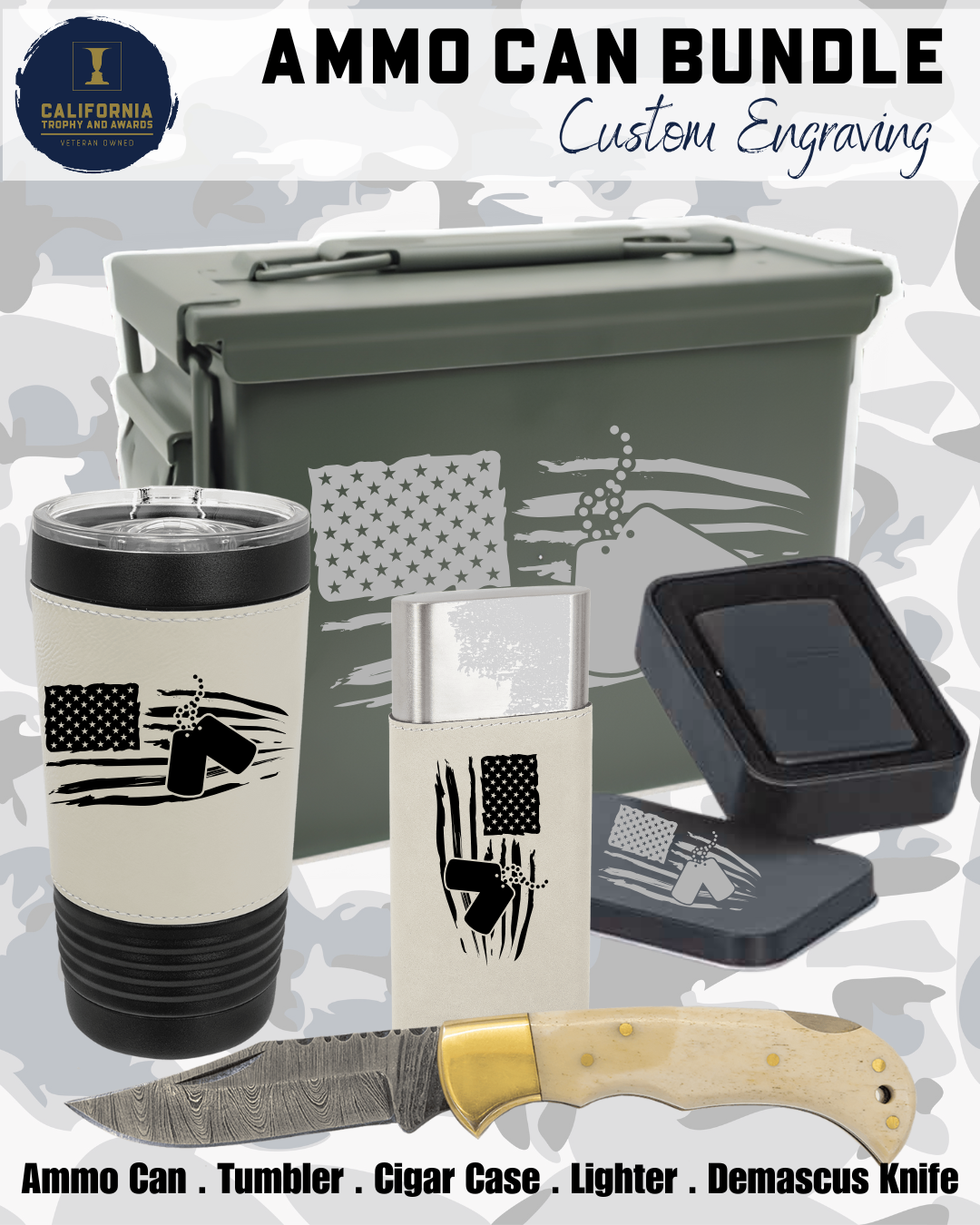 Bundle 4: includes 20oz White Leatherette Black tumbler (LTM5212) and Stone handle Damascus knife (BR1752)